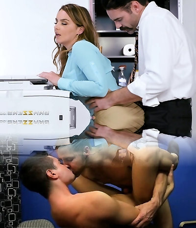 Incredible office threesome with fake bumpers blondie Courtney Cummz