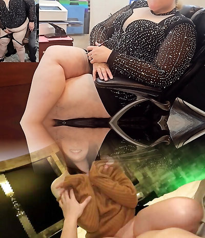 Busty big tits cougar is squiring in the office