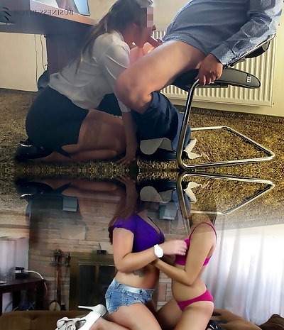 Dad Threesome Teasing Angels Office Slut