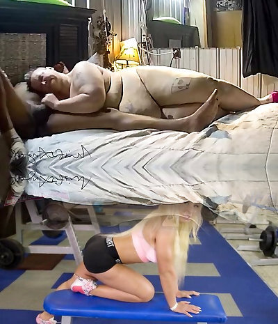 My beautiful stepmother strapped up in a harness. Part 2. I bang her pussy until I cum on her big butt