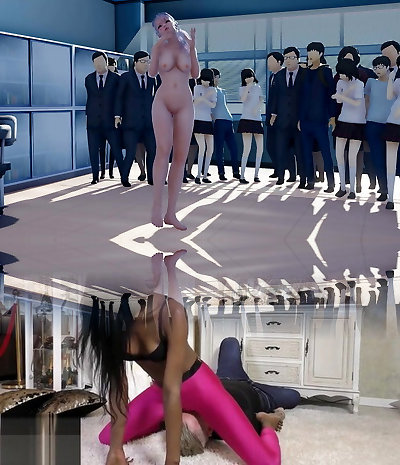 Sexy and busty sizzling brunette babe with a jacket and nothing underneat no bra no panties shows her gash and bare booty