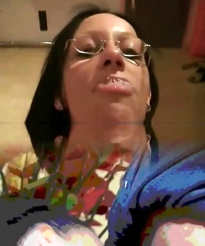 Tattooed redhead with glasses and pierced nipple is looking
